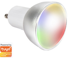 GU10, contrôle par WiFi avec l’application gratuite, forme réflecteur, flux lumineux: 350 lumens, indice minimal de rendu des couleurs: 80 Ra, température chromatique: blanc chaud jusqu’à froid & RVB,