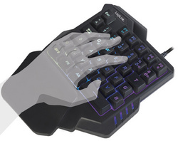 LogiLink Beleuchtete Einhand-Gaming Tastatur, schwarz – deutsche Tastaturbelegung, kabelgebunden, Regenbogen LED- Hintergrundbeleuchtung, große Handablage, 2 programmierbare Stasten, 1 Taste für Farbauswahl der Beleuchtung, Kabellänge: 1,6 m, Maße: (B)230 x (T)173 x (H)37 mm (ID0181)