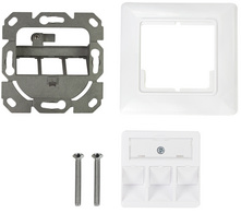 pur (RAL9010), 3 ports, compatible avec de nombreux interrup teurs de fabricants allemands, pour 3 modules keystone, sortie coudée du module à 45 degrés vers le bas, avec fenêtre d’inscription, cadre