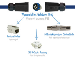 pour Keystones, connecteur et coupleurs, classe de protection IP68, hermétique & étanche, résiste aux UV et aux intempéries, pour câbles d’un diamètre externe de 3-8,5 mm, en plastique, PA66, UL94V-2,