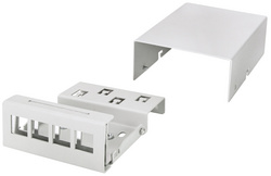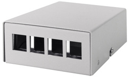 boîtier de distribution pour 4 embases Keystone, non équipé, boîtier en deux parties avec couvercle articulé, s’ouvre et se ferme sans outils, pour un montage en surface, sous le plancher ou sous un f