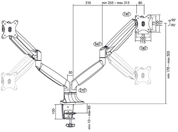 Bras support pour écran, en aluminium, 2 bras pour écrans de 33,02 à 81,28 cm (13″