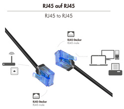 noir, diamètre: 2,8 mm, gaine flexible & souple, petit rayon de courbure, 2x RJ45 mâle (extra court), conducteurs en cuivre pur, contacts plaqués or, non blindé, avec protection antipli (CQ3103U) igni