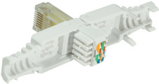 blanc, UTP, pour câble rond avec diamètre extérieur max. de 5,3 mm, pour conducteur interne AWG 24 à 26, fil ou brins, avec connecteurs dorés, boîtier avec traction, sans outils, dimensions: (L)15 x (