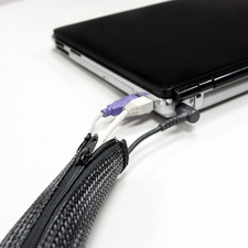 • insérez le câble dans la gaine ouverte, fermez la fermeture zip – terminez!