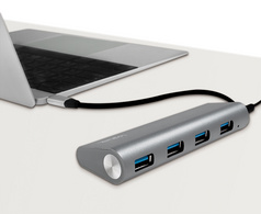 boîtier en alu, fiches: 4x fiche USB-A, 1x USB-C 3.1 Gen1, compatible en aval avec USB 3.0/2.0/1.1, transfert de données max. 5 GBit/sec., Plug & Play, câble USB-C: 150 mm, dimensions: (L)112 x (P)37