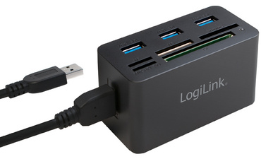 connexions: 3x ports USB-A, boîtier en plastique, avec fonction lecteure de carte SD, MicroSD, M2, MS (Duo/Pro) et CF, lecteur de carte Multi-LUN R/W, alimentation électrique via connexion USB, longue