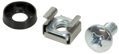 pour la fixation des composants dans le niveau 19″, en acier, zingué, diamètre: 6 mm, contenu: 50 écrous à cage, 50 vis, 50 rondelles (AC0112)