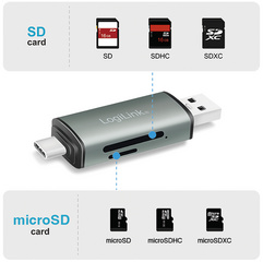 format voyage, entrée: USB-A mâle & USB-C mâle, sortie: 1x 1x microSD, 1x SD (utilisables simultanément), prend en charge les cartes SD/SDHC/SDXC/microSD/microSDHC/microSDXC, taux de transfert jusqu’à