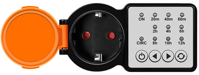 • Countdown von 20 Minuten bis 12 Stunden oder Aktivierung der Zyklusfunktion für eine Wiederholung des Timers alle 24 Stunden
