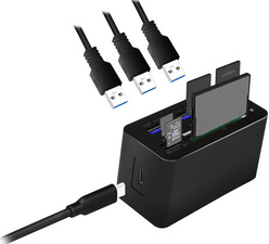 1x connecteur d’alimentation USB-C, 3x connecteur 3.0 USB-A, 1x lecteur de cartes SD/microSD/M2/MS/CF