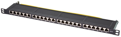 noir (RAL9005), 24 x port RJ45, blindé, classe: EA 500 MHz, ISO/IEC 11801 et TIA/EIA 568B.2-10, boîtier en métal, mi-hauteur, dimensions: (L)482,6 x (P)98,6 x (H)22 mm (NP0063)