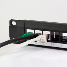 (RAL9005), 1 U, non équipé, pour 24 modules Keystone blindés ou non blindés mesurant jusqu’à 16,7 mm de large, support de câble amovible, en acier SPPC avec revêtement plastique par poudre, comprend u