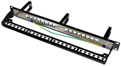 Panneau de brassage Keystone 19″, 16 ports, blindé Pour modules Keystone jusqu’à 17,4 mm de largeur
