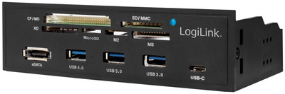combinaison d’un lecteur de cartes, d’un hub USB & d’une connexion eSATA pour une baie de 5,25″, le lecteur de carte prend en charge les cartes M2/MS/SD/microSD/XD & CF, conne- xions : 3x USB 3.0 (typ