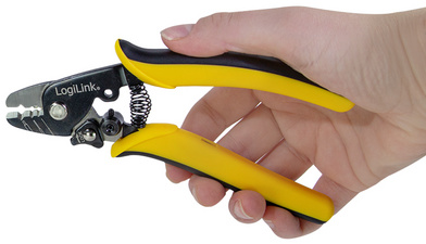 pince réglable pour câbles de 0,13 à 4 mm de diamètre (AWG36 -10), triple fonction pour retirer les différentes gaines, matériau: acier au carbone avec poignées en plastique anti- dérapantes, noir/jau
