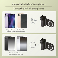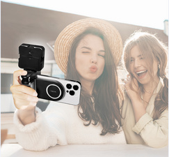 compatible bluetooth, avec déclencheur, compatible MagSafe, support pour LED/micro & filetage 1/4″ pour trépied, télécommande BT 5.2 amovible, port de charge USB-C: 5V/0,5A (2,5 W max.), support magné