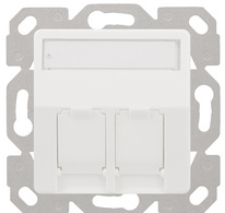 design compatible, sortie oblique à 27 degrés, profondeur de montage réduite, similaire à RAL 9010, convient pour montage encastré, en saillie & dans canal d’allège, composé d’un cadre, d’une plaque c