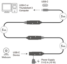 – câble USB-C pour charger et échanger des données avec votre appareil – idéal pour rallonger les câbles existants connectés à des appareils USB externes (par ex. station d’accueil, convertisseur, hub, webcam, etc.) (jusqu’à 15 m avec Daisy Chaning)