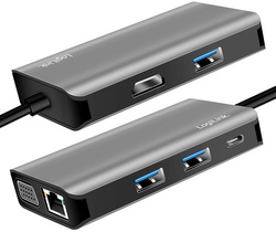 sortie: 1x USB-C PD, 3x USB-A 3.0, 1x RJ45 Gigabit Ethernet, 1x HDMI, 1x VGA, entrée: USB-C mâle, (longueur du câble: 200 mm), corps en aluminium, dimensions: (L)55,5 x (P)90 x (H)17 mm, couleur: anth