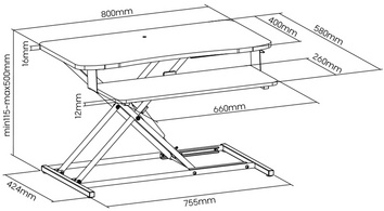 • dimensions du plateau pour clavier : (L)660 x (P)260 mm (charge max. : 2 kg)