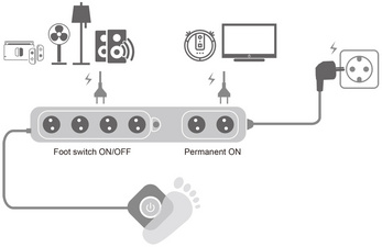 -fach, davon 4 mit Fußschalter Ideale Stromverlängerung für schwer zugängliche Steckdosen