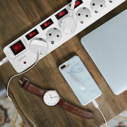Multiprise Euro, 6 prises, avec interrupteurs individuel & général
