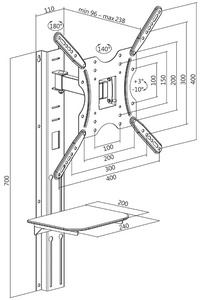 • supporte les VESA standards jusqu’à 400 x 400 mm (VESA 100 x 100 mm, VESA 200 x 100 mm, VESA 200 x 200 mm, VESA 300 x 200, VESA 400 x 200 mm, VESA 300 x 300 mm, VESA 400 x 400 mm)