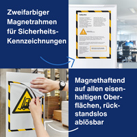 Cadre magnétique magnetofix SAFETY, A4 Cadre magnétique bicolore pour les marquages et consignes de sécurité