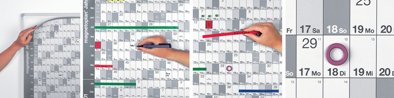 magnetoplan Jahresplaner mit Trägertafel, (B)865 x (H)620 mm – ————– für den Markt: D / L / A / CH ————— Terminplaner für 1 Jahr + die ersten 3 Monate des Folgejahrs bestehend aus: 1 magnethaftende Trägertafel, 1 Jahresplaner- folie 2024, 1 Zubehör-Set 1 (1235325)