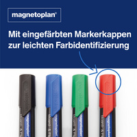 magnetoplan Marqueur pour tableau blanc & chevalet PRO+ – pour écrire sur les surfaces de tableau blanc et de chevalet de conférence, largeur de tracé: 1,5 – 3,0 mm, capuchon et clip à la couleur de l’encre, pointe ogive, assorti contenu: 4 marqueurs en jaune, bleu clair, violet, orange (1228110)