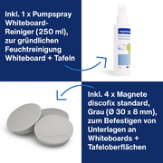 magnetoplan mini kit d’accessoires ferroscript, pour les – ————- pour le marché: A / L / A / F —————- tableaux blancs, contenu: 4 marqueurs de tableau en noir, bleu, rouge et vert, 1 effaceur pour tableau, 1 x 250 ml de nettoyant pour tableau, 4 aimants discofix standard 30 mm (12299N)
