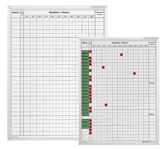 magnetoplan Tableau planning pour absence et présence, – ————- pour le marché: D / L / A / CH ————– (L)450 x (H)600 mm, plan de tableau avec cadre en aluminium anodisé pour 30 employés, fenêtre aimants incl