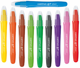• poussoir grâce à un mécanisme rotatif à l’extrémité étui de 10: assorti dans les couleurs jaune, orange, marron, vert clair, vert foncé, bleu, noir, violet, rose et rouge Avertissements : Pour les consommateurs, conformément à la directive européenne sur les jouets (2009/48/CE) : ATTENTION: ne convient pas aux enfants de moins de 36 mois en raison des petites pièces qui peuvent être avalées.