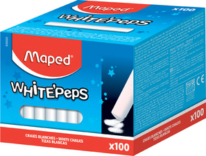 Maped Craie pour tableau WHITE’PEPS, rond, blanc – en carbonate de calcium, surface lisse, pour ne pas se salir les mains, dimensions d’1 craie: diamètre: 9,8 mm, longueur: 79 mm, en emballage blister contenu: 10 pièces (593500)