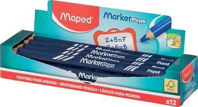 Maped Crayon ardoise Marker’Peps, présentoir de 12, bleu – mine de crayon en bois épaisse pour ardoise et tableau blanc gros diamètre triangulaire ergonomique, peut être taillé, effaçable à sec, assorti en rouge, vert, bleu & noir, en paquet de 12 crayons en présentoir (833801FC)