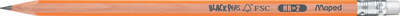 Maped Crayon BLACK’PEPS, avec gomme, degré de dureté: HB – diamètre de la mine: 2,2 mm, triangulaire, mine graphite incassable, 100% en bois de peuplier, naturel/orange en paquet de 12 (M851721/851721FC)