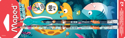 Maped Crayon de papier JUNGLE fever avec gomme, blister de 2 – HB, épaisseur de la mine: 2,2 mm, mine graphite résistante, sans bois, en résine recyclée, corps assorti avec motifs d’animaux contenu: 2 crayons incl