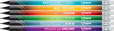 Maped Crayon graphite BLACK’PEPS ENERGY, dureté: HB, pot 72 – avec gomme, épaisseur de mine: 2,2 mm, triangulaire, sans bois, en résine, le vernis ne s’écaille pas en cas de bris, mine graphite incassable, corps avec message personnalisé, contenu : 72 pièces (M852002) corps de couleurs assorties