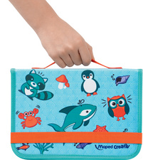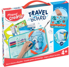 Maped Creativ Kit de dessin voyage TRAVEL BOARD, 19 pièces – sacoche en tissu à compartiments de rangement, dès 4 ans contenu: 1x ardoise transparente, 4 marqueurs pour tableau blanc: vert, noir, lilas & rouge, lingette de nettoyage, 12 motifs animaux pour dessiner, peindre & jouer (M969310)