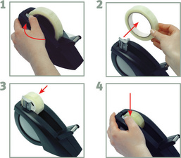 • avec une axe unique pour tous formats de rouleaux (12 mm x 33 m, 19 mm x 33 m, 12 mm x 66 m ou 19 mm x 66 m)