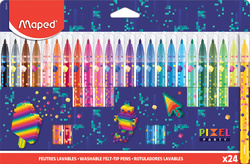 Maped Feutre PIXEL PARTY, étui en carton de 24 – épaisseur du trait: 2,8 mm, pointe ronde fermement sertie, avec motif pixels, facilement lavable, peut rester ouvert une semaine sans sécher, capuchon transparent, contenu: 24 feutres (845417)