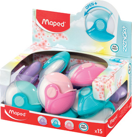Maped Gomme en plastique Zeona+, blanc, présentoir de 15 – rond, dans un étui plastique rotatif, assorti dans les couleurs pastel bleu, rose et violet, dimensions: (L)54 x (P)54 x (H)21 mm en paquet de 15 pièces (123211)