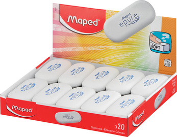 Maped Gomme plastique Epure, ovale, blanc, présentoir de 20 – souple, dimensions : (L)61 x (P)27 x (H)11 mm, emballé à l’unité, sans PVC ni phtalates, en paquet de 20 pièces dans un présentoir (103701)