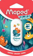 Maped Gomme plastique JUNGLE fever, blister, blanc – design jungle avec motifs d’animaux, livré en 2 motifs d’animaux différents, pas de choix de motif possible, dimensions: (L)27 x (P)57 x (H)11 mm (103702)
