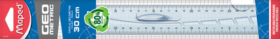 Maped Règle plate Geometric, 300 mm, en plastique, poignée – transparent, graduation avec encre résistante aux UV, marquage visuel tous les 5 cm, dans un étui de protection, (M242130)