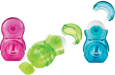 Maped Taille-crayons-gomme Loopy Duo Indiens, présentoir de – 24, avec design indiens, taille-crayons & gomme en un, taille-crayons & gomme avec couvercle de protection, insert taille-crayons en plastique, assorti dans les couleurs vert, fuchsia & bleu, en paquet de 24 pièces dans un présentoir (049111)