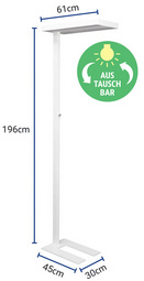 Lampadaire à LED MAULjaval, dimmable variateur réglable en continu selon l’activité et les besoins individuels rayonnement vers le haut d’env. 50 % et vers le bas d’env. 50 % double utilisation : lumière directe pour le plan de travail et indirecte pour l’éclairage de la pièce haute efficacité énergétique : technique LED moderne extrêmement économique concept de sécurité technique Made by MAUL