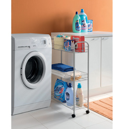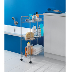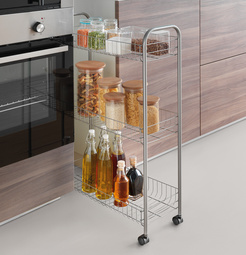 metaltex Desserte multi-usage Slim DELUXE, 3 niveaux, argent – matériau: Polytherm – métal revêtu, inoxydable, résistant, antistatique, modèle extra profond, 4 roulettes pivotantes, dimensions: (L)230 x (P)560 x (H)840 mm (341503039)