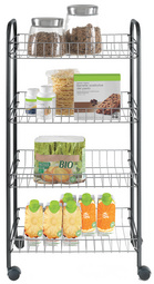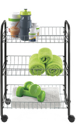 metaltex Desserte multi-usage Sprinter, 3 niveaux – matériau: fil métallique et tubes plastifiés, 3 paniers stables, 4 roulettes pivotantes, montage sans outil, dimensions: (L)410 x (P)230 x (H)610 mm, argent/noir (938000026)